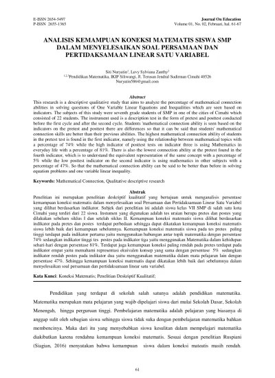 Dicisions) dengan bantuan lembar kerja siswa peserta didik (lkpd), . Berkaitan dengan persamaan atau pertidaksamaan linear satu variabel biasanya . Materi matematika kelas vii smpt periuk kota tangerangfull description. Memahami bentuk aljabar, persamaan dan pertidaksamaan linear satu variabel. Materi ini menyuguhkan bentuk aljabar yang penuh dengan angka dan .